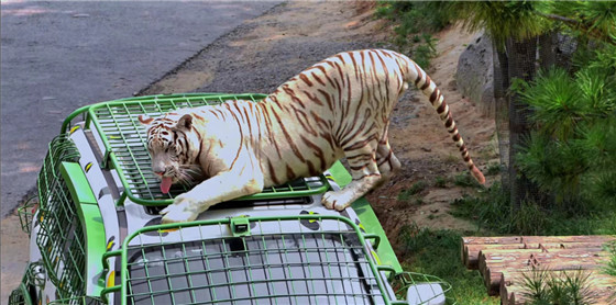 銀基動(dòng)物王國(guó)的王牌項(xiàng)目酋長(zhǎng)之家獲得了2023年度中國(guó)主題公園優(yōu)秀體驗(yàn)項(xiàng)目殊榮,項(xiàng)目以沉浸式的動(dòng)物主題體驗(yàn)和互動(dòng)為特色,酋長(zhǎng)之家VIP觀光車則全身覆蓋特質(zhì)鋼網(wǎng),在保護(hù)游客安全的同時(shí),讓游客沉浸式體驗(yàn)與動(dòng)物近距離接觸,在野生動(dòng)物的領(lǐng)地與老虎、棕熊、獅子相處,享受驚心動(dòng)魄的野外探險(xiǎn)之旅。