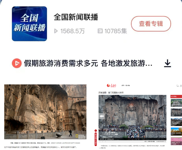 節(jié)點(diǎn)時(shí)期,龍門石窟則以短視頻交互式傳播和主流媒體合作等新傳播方式,創(chuàng)新傳統(tǒng)文化現(xiàn)代表達(dá),今年十一期間花式喊話“游客注意安全”、創(chuàng)新項(xiàng)目夜游龍門、景區(qū)人流火爆、與NPC白居易吟詩(shī)作對(duì)的視頻接連火爆出圈,部分宣傳覆蓋央視、央廣、新華社、人民網(wǎng)四大頂級(jí)媒體、全國(guó)多家主流媒體網(wǎng)站、多地衛(wèi)視,鋪開(kāi)傳播新路子。