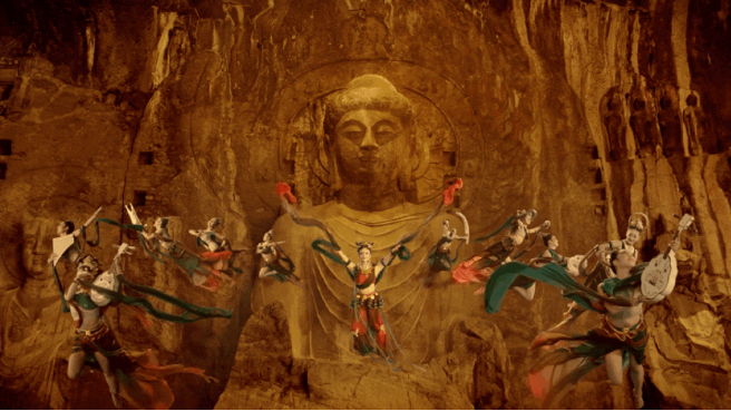 霓裳廣帶,伎樂(lè)繞宇的龍門飛天