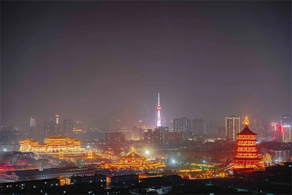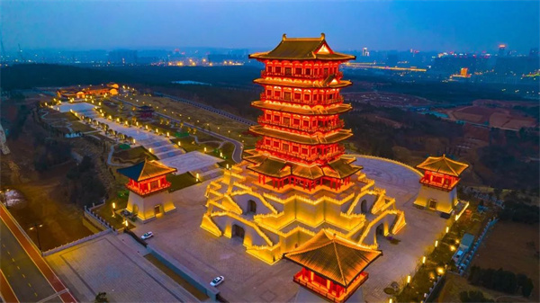 夜幕降臨時(shí),朱櫻塔燈光璀璨,盡顯洛陽(yáng)古都魅力。
