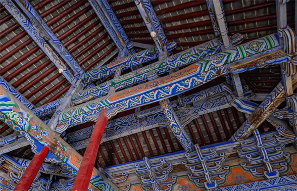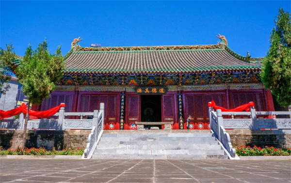 祖師廟占地面積約1700平方米,現(xiàn)存前殿、大殿和東耳房。其中,大殿坐北朝南,面闊5間,進(jìn)深3間,殿內(nèi)左右暖閣各1間,歇山頂,四周斗拱,飛檐起翹,琉璃瓦覆蓋,頂部正脊兩端有陶塑龍吻,脊背飾龍、荷花彩陶浮雕,殿頂四角戧背上塑四神。