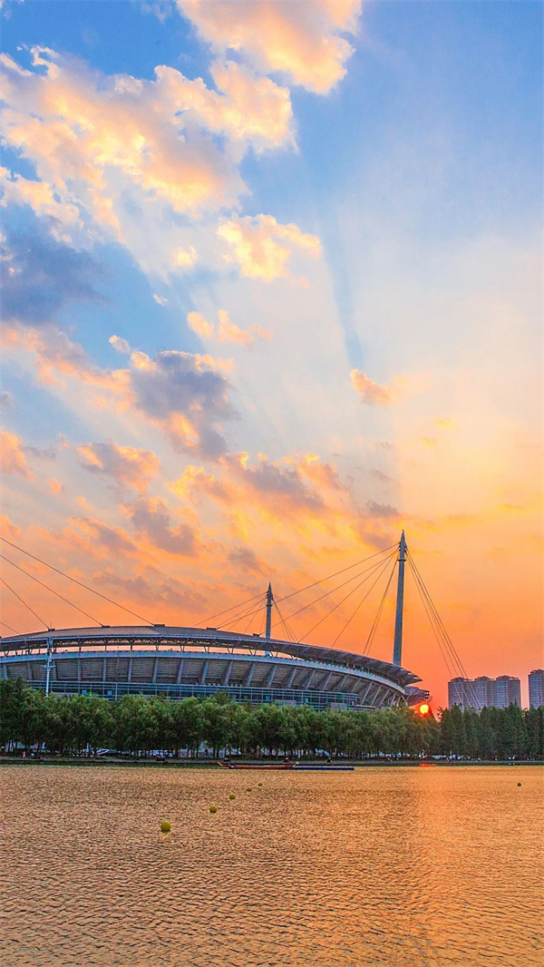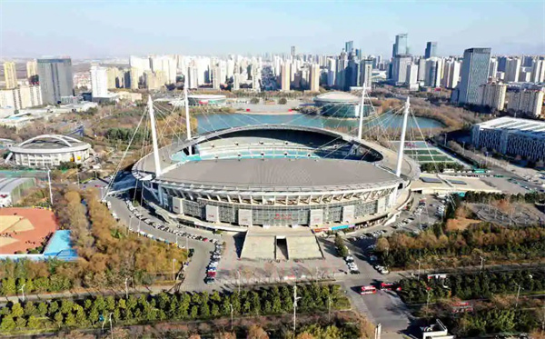 洛陽(yáng)新區(qū)體育場(chǎng)位于新區(qū)開元大道人工湖西側(cè),充分顯示了體育建筑的力與美。