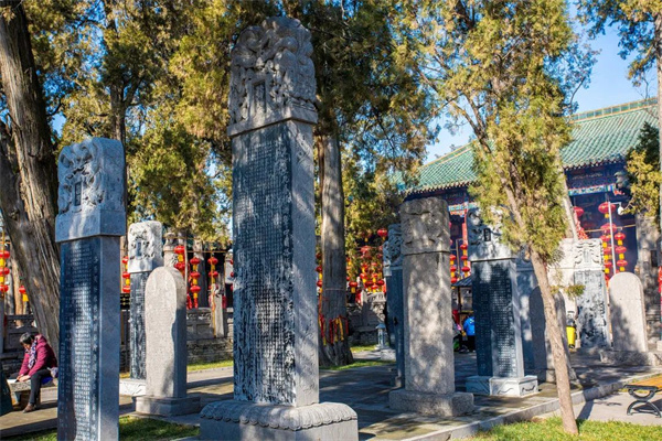 廟內(nèi)現(xiàn)存碑刻70余方,石獅100余尊,鐵獅若干,古柏百棵,殿宇百間,還有慈禧、康熙、光緒等親筆御書。