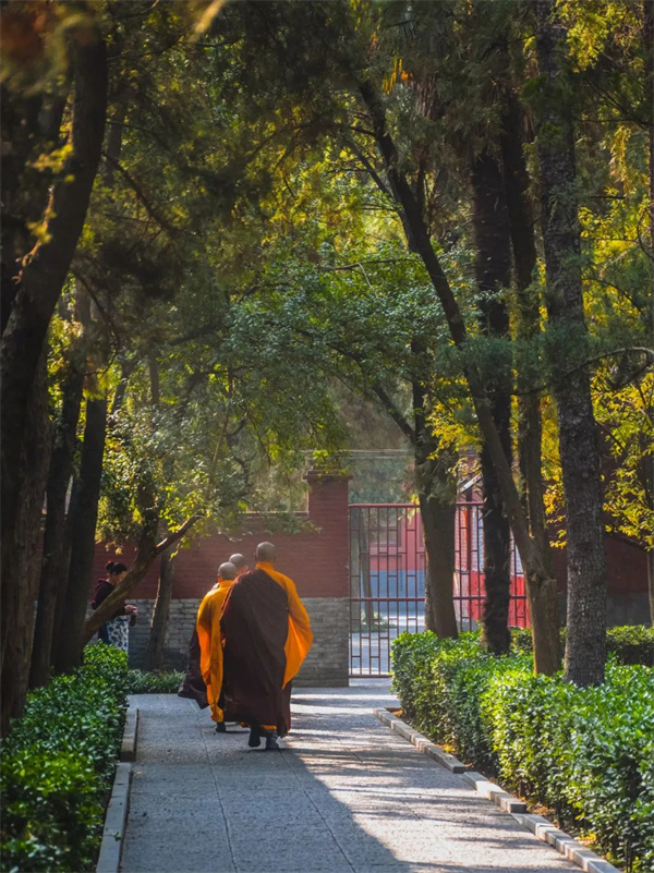 冬天的白馬寺人影綽綽,寺院一隅的紅色城墻,皆是散落的黃昏許下的心愿。沿著臺階漫步,耳邊禪音裊裊,古樹參天、林木陰翳,靜氣凝神間瞬間被這古樹、古寺營造出的靜謐所治愈。