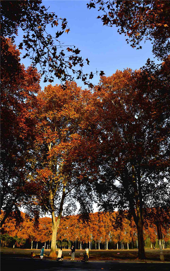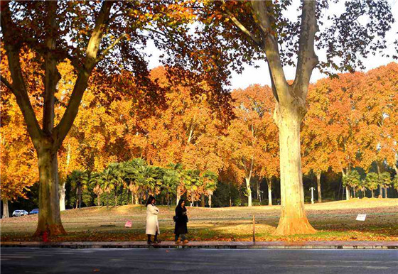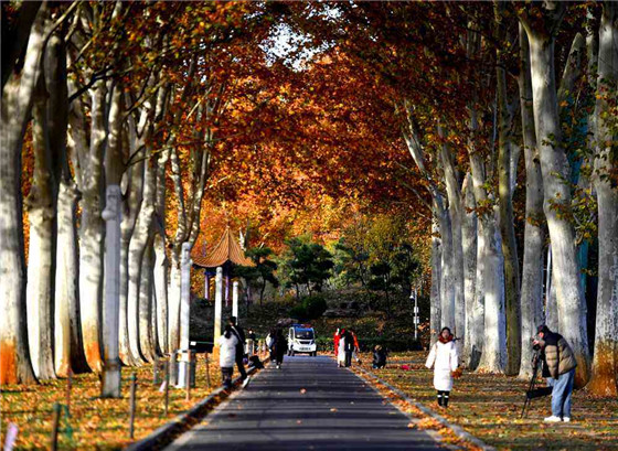 11月29日,惠濟(jì)區(qū)黃河迎賓館內(nèi)外,冬日梧桐,在陽光照耀下金黃燦爛,吸引眾多市民前往拍照打卡。