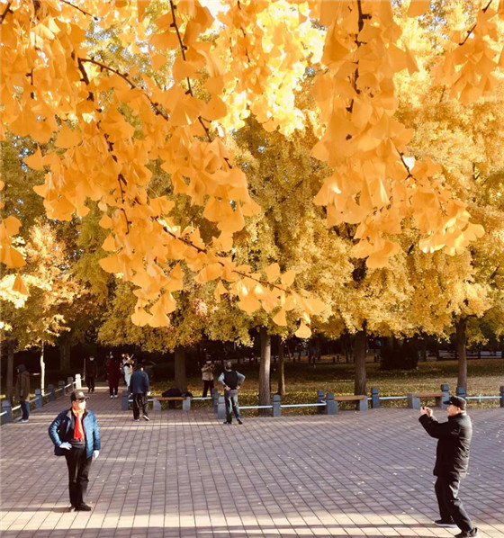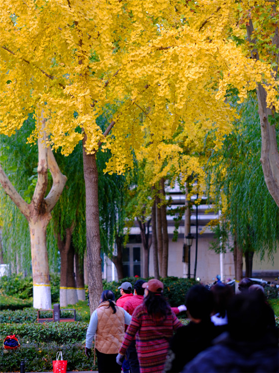 紫荊山公園北門有十幾株銀杏樹(shù),其中幾株樹(shù)齡近40年,目前也進(jìn)入最佳觀賞期。