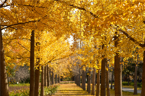 鄭州植物園有植物1800余種,120萬(wàn)余株,堪稱一座“植物博物館”。一到秋天,就變得多姿多彩,銀杏樹(shù)在西門入口處的主干道和牡丹園附近較多……