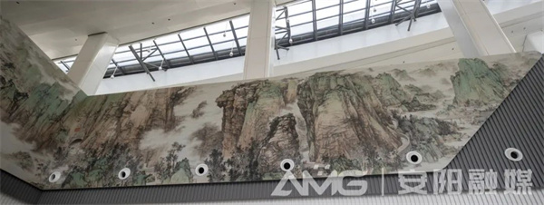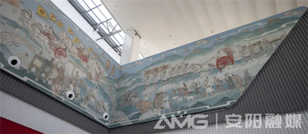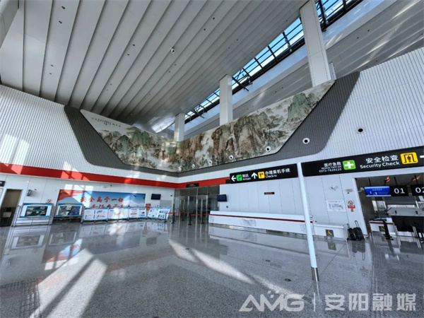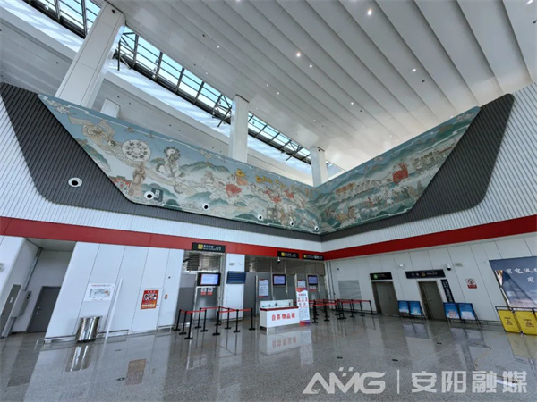 感受候機(jī)樓現(xiàn)代化建筑和機(jī)場先進(jìn)設(shè)施設(shè)備的同時,候機(jī)樓大廳內(nèi)兩幅大型壁畫吸引了廣大旅客的目光,這是兩幅安陽元素滿滿的名家作品,更是體現(xiàn)中華文化和民族精神的恢宏巨制。