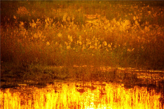 蘆葦在水中金色的倒影 李志軍 攝