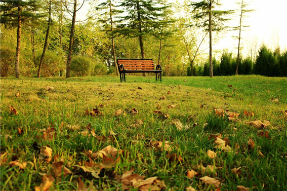 綠色的草坪中點綴著落葉,形成了一幅唯美的畫卷。 李志軍 攝
