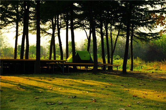 林地平臺上的露營帳篷 李志軍 攝