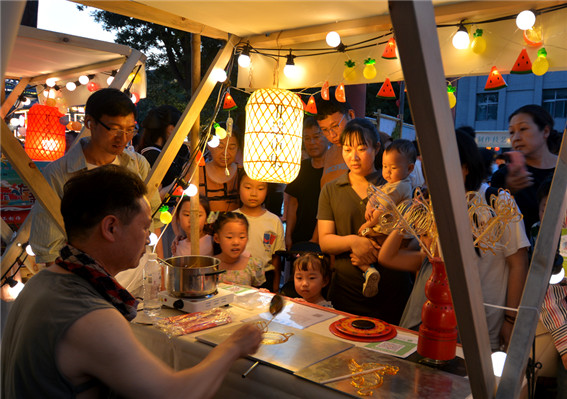 活動現(xiàn)場設(shè)置產(chǎn)品展示展銷區(qū)、中醫(yī)義診咨詢區(qū)、節(jié)目展演互動區(qū)、傳統(tǒng)技藝體驗區(qū)等多個區(qū)域;通過線下銷售、線上直播帶貨相結(jié)合的方式,集中展銷極具開封特色的非遺產(chǎn)品,吸引市民游客駐足挑選;精選優(yōu)秀傳統(tǒng)中醫(yī)藥類非遺項目為現(xiàn)場群眾答疑解惑,提供把脈、針灸、推拿、按摩等中醫(yī)義診服務(wù),深受群眾歡迎;設(shè)置多個舞臺,開展快閃演繹、漢服表演、宋風雅集等活動,動態(tài)展示武術(shù)、曲藝、宋詞樂舞等非遺技藝;傳授非遺技藝,沉浸式體驗非遺的文化色彩和生命力,剪紙面塑、年畫風箏、投壺蹴鞠、創(chuàng)意印章等項目現(xiàn)場互動不斷,格外熱鬧。經(jīng)過不斷發(fā)展完善,開封非遺市集初具規(guī)模,內(nèi)容豐富,形式多樣,吸引越來越多的外地游客前來打卡,非遺產(chǎn)品銷量可觀,受到了社會各界的廣泛關(guān)注,現(xiàn)已成為開封城市夜間文旅消費新熱點。