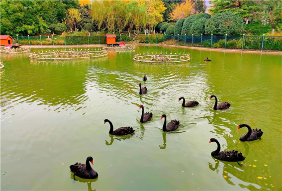 商東外國語學(xué)校景觀湖里游動的黑天鵝 劉紅亮 攝