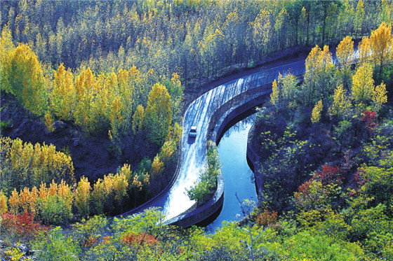 太行天路一號(hào)旅游公路濟(jì)源水洪池段,車(chē)輛穿行其中,猶如畫(huà)卷。