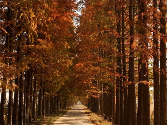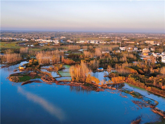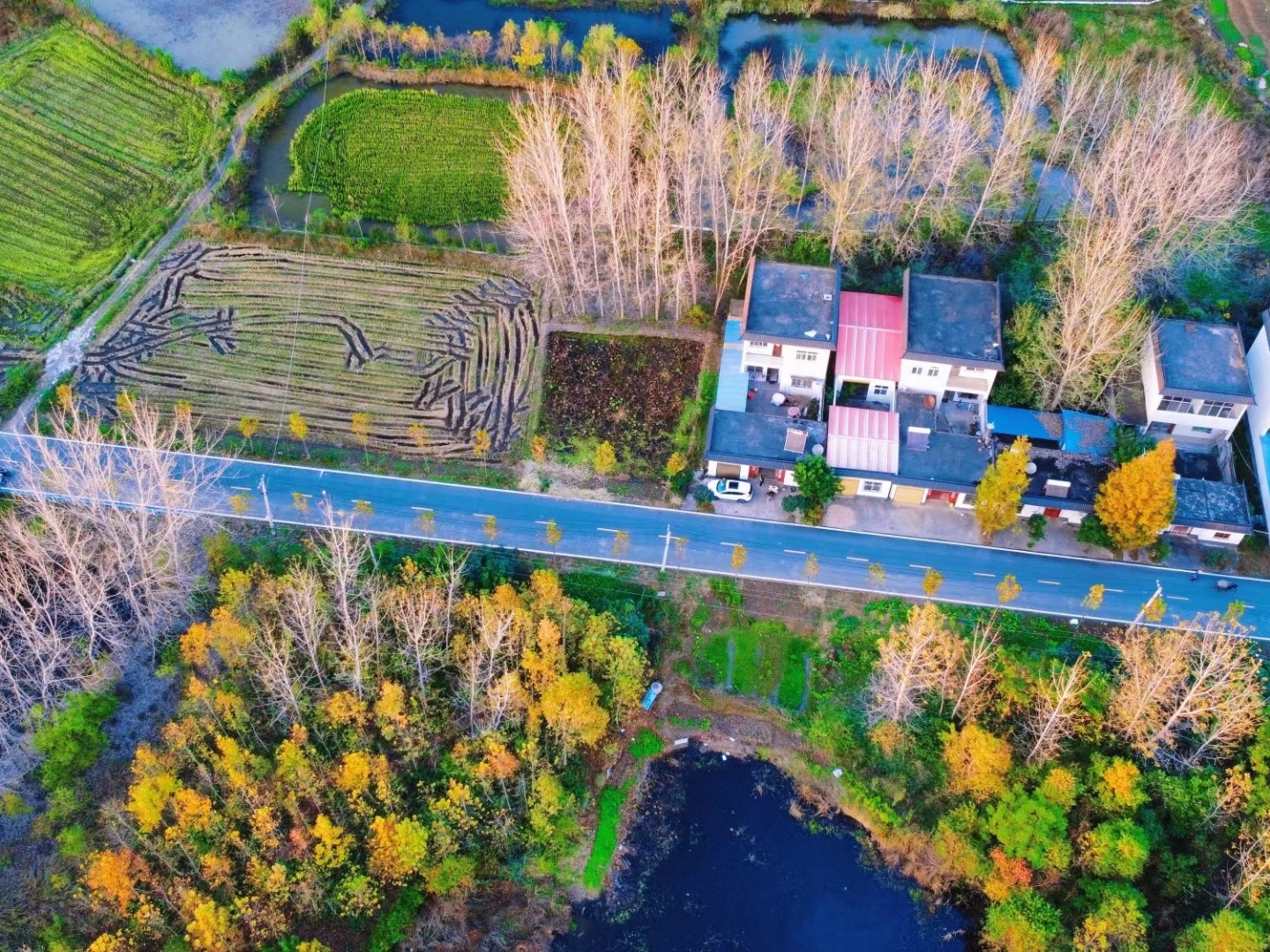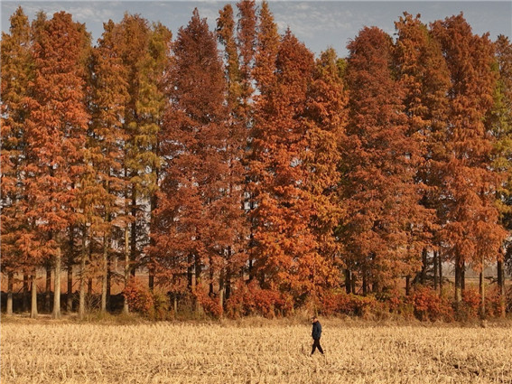 初冬時(shí)節(jié),河南省信陽市潢川縣各地呈現(xiàn)出“美拉德”風(fēng),金黃色、火紅色以及焦糖色,好似一幅幅油畫。