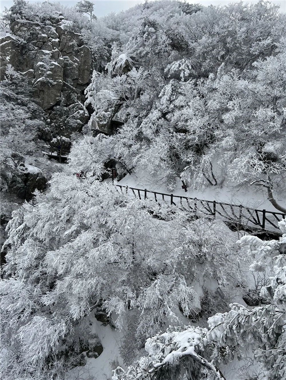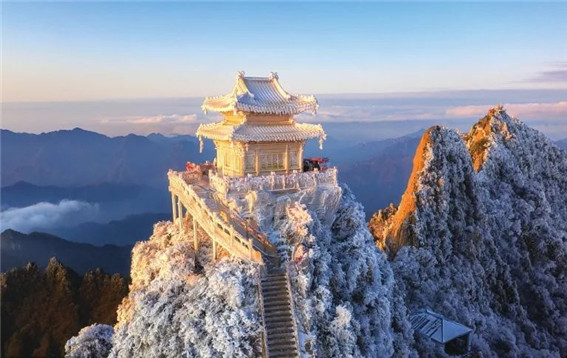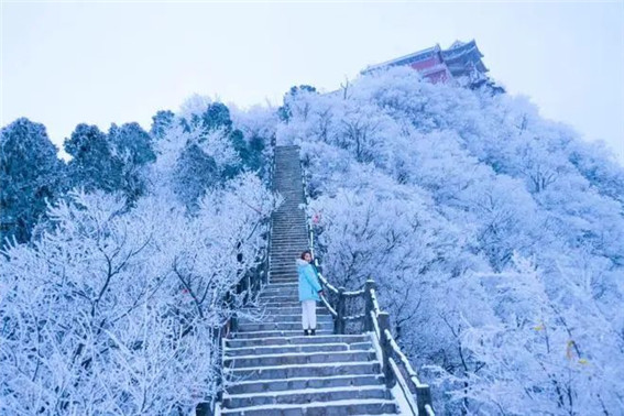 冬天來老君山,除了看日出、觀云海,霧凇也是不容錯過的,它為老君山增添了幾分壯美,營造了優(yōu)雅恬靜感覺。