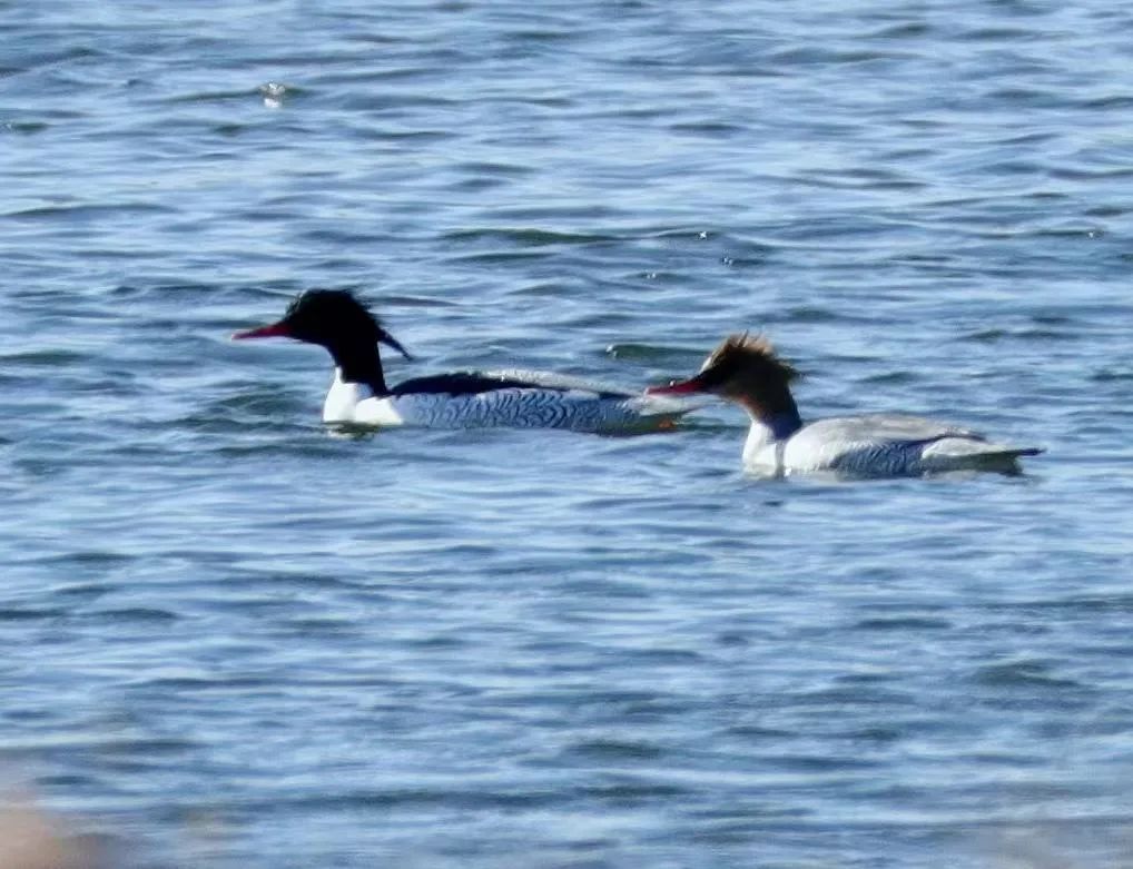 在薛宜軍的鏡頭下,幾只紅嘴、黑羽冠的“鴨子”在碧波蕩漾的水面上游弋、覓食,飛離水面時(shí),可見上黑下白腹羽。“這是中華秋沙鴨。”12月11日,看到記者轉(zhuǎn)發(fā)的薛宜軍拍到的照片和視頻,平頂山市林業(yè)局自然保護(hù)地和野生動(dòng)植物保護(hù)科、市森林資源監(jiān)測(cè)保護(hù)中心的工作人員一眼就認(rèn)出來了。