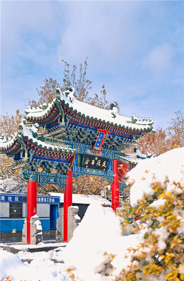 城市一夜間開啟“白色模式”,古建筑也添了“新衣”。 光華 攝