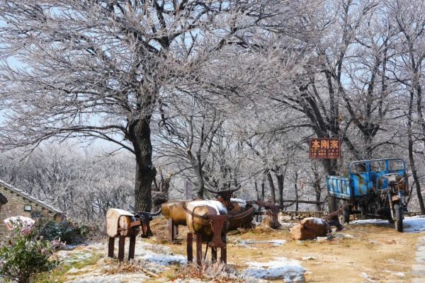 霧凇冰掛齊上陣,黃石頭莊別有一番情趣