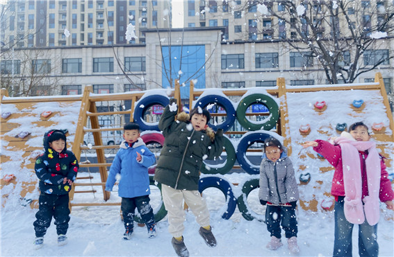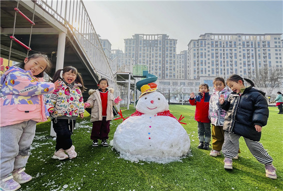 雪人形似玉,童心燦若霞。 秦雪 攝