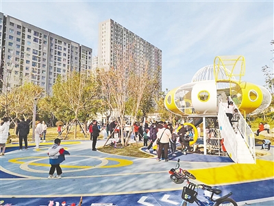 “為落實今年重點民生實事建設任務,考慮到附近居民區(qū)較為集中,因地制宜利用這里一處大土堆建成了坡地公園,公園一建成便成了熱門‘打卡地’,由于兒童游樂設施較多,一到周末,老人小孩等游客特別多,人們或健身,或游玩賞景,各得其樂。”高新區(qū)城市管理局環(huán)境衛(wèi)生和綠化園林中心科員劉艷楠說,蓮花公園北園只是沉沙池片區(qū)綠化的起點,接下來的兩三年,高新區(qū)將在沉沙池周邊規(guī)劃建設環(huán)形連通綠地,新增綠地面積約15萬平方米,為附近居民打造更加生態(tài)宜居的公園城市環(huán)境。