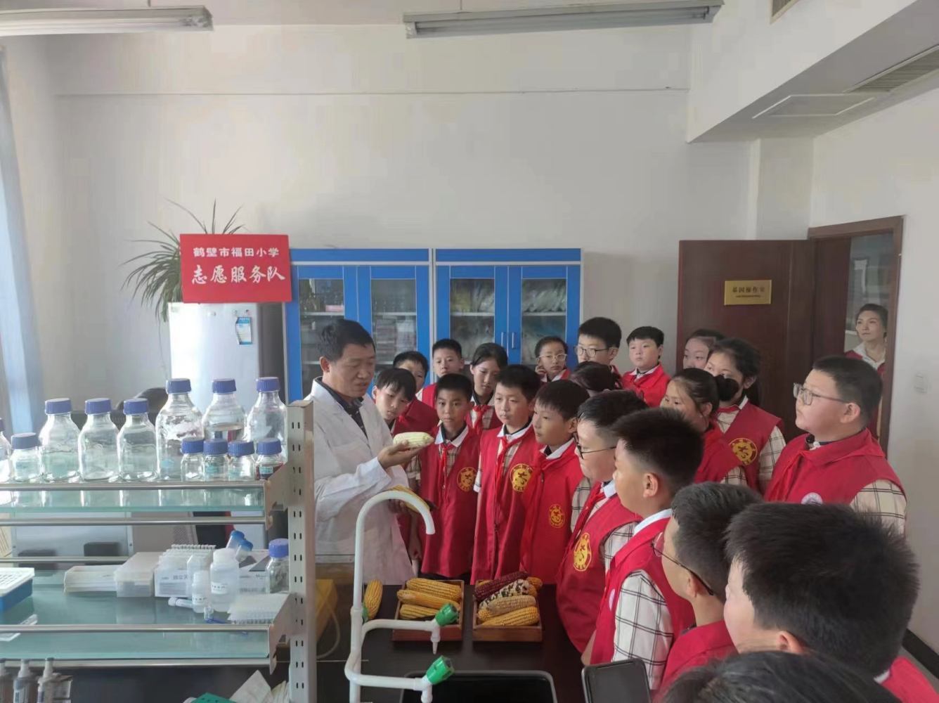 在分子育種實(shí)驗(yàn)室,科研人員為同學(xué)們講解了玉米的胚芽、種類以及用途等相關(guān)知識(shí)。同學(xué)們興致盎然,在看一看、摸一摸、動(dòng)一動(dòng)、聞一聞和問一問中,真正走進(jìn)了植物世界。本次活動(dòng),融教育性、知識(shí)性、趣味性于一體,培養(yǎng)了同學(xué)們的科學(xué)精神、實(shí)踐創(chuàng)新能力等,同學(xué)們走近科學(xué),感受自然,領(lǐng)略了現(xiàn)代農(nóng)業(yè)的奇妙,在同學(xué)們的心田播下了一顆科技興農(nóng)的種子。