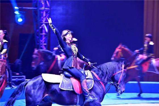 “在馬術(shù)表演環(huán)節(jié),演員們會(huì)在飛速奔跑的馬背上展示出跳躍、穿越馬跨、馬上跳繩和站立等驚險(xiǎn)刺激的雜技動(dòng)作,不斷增加難度,挑戰(zhàn)極限,給觀眾帶來(lái)真正的速度與激情。”曹青峰介紹說(shuō)。