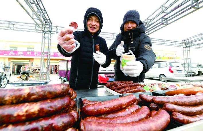 帶魚、牛肉、驢肉、粉條、炸貨、蘋果、車?yán)遄印⒏晒?hellip;…年貨節(jié)現(xiàn)場,各種年貨琳瑯滿目,參加年貨美食節(jié)的商戶們正在攤位前忙著向消費(fèi)者介紹產(chǎn)品。“聽說今天這里舉辦年貨美食節(jié)活動,我就從市里開車過來看看,逛了一圈,感覺這里年貨品類確實(shí)挺齊全,價格也比超市便宜。”市民王先生說,他把剛采購的紅薯粉條和帶魚裝上車,準(zhǔn)備再逛一會兒,買一些牛肉和香腸。“往年年貨節(jié)的時候,很多市民都開車到這里采購年貨,過幾天人會更多,我們年貨節(jié)期間的銷量比平時能翻好幾倍。”經(jīng)營肉食品的一名店主說道。