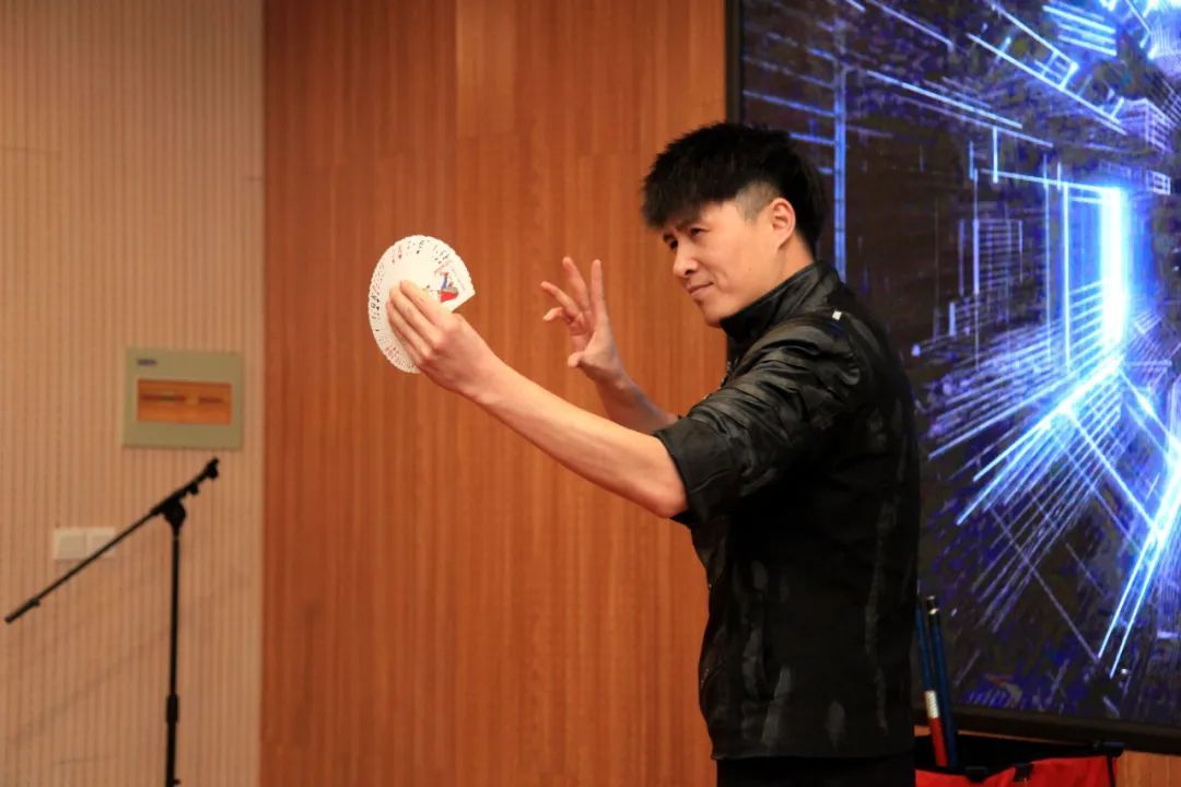 由河南省雜技家協(xié)會(huì)副主席、2013年央視春晚魔術(shù)師、中國非物質(zhì)文化遺產(chǎn)省級(jí)傳承人丁德龍,河南省優(yōu)秀青年魔術(shù)師李夢一等為大家?guī)淼哪g(shù)表演秀拉開了活動(dòng)的帷幕,現(xiàn)場互動(dòng)熱烈,掌聲和笑聲不斷。