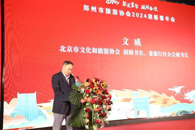 會(huì)上,北京市文化和旅游協(xié)會(huì)副秘書(shū)長(zhǎng)兼旅行社分會(huì)秘書(shū)長(zhǎng)文威代表北京市文化和旅游協(xié)會(huì)向鄭州市旅游協(xié)會(huì)第六屆理事會(huì)第二次會(huì)員大會(huì)暨2024迎新春年會(huì)的召開(kāi)表示熱烈祝賀!希望鄭州市旅游協(xié)會(huì)搶抓機(jī)遇、做實(shí)支撐,著眼國(guó)際消費(fèi)中心城市和全球數(shù)字標(biāo)桿城市建設(shè),主動(dòng)適應(yīng)從“大眾文旅消費(fèi)時(shí)代”進(jìn)入到“品質(zhì)文旅消費(fèi)時(shí)代”的新趨勢(shì),與北京市文化和旅游協(xié)會(huì)一道增進(jìn)共識(shí)、深化合作、共謀發(fā)展,促進(jìn)雙方優(yōu)勢(shì)文旅資源互相導(dǎo)入,努力推動(dòng)兩大區(qū)域文旅深度交流和高質(zhì)量聯(lián)動(dòng)發(fā)展。