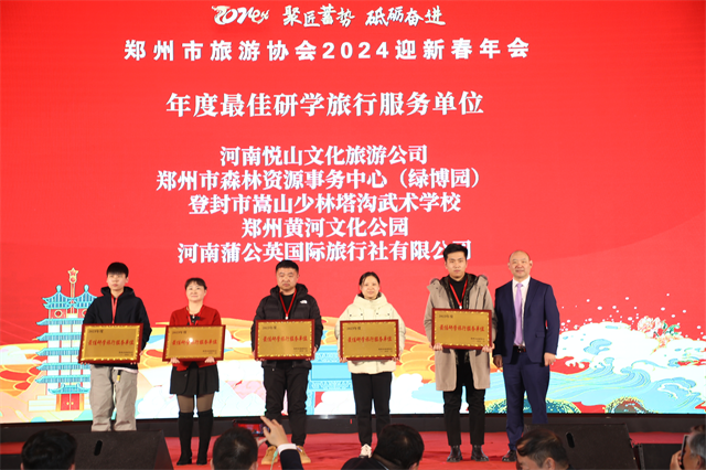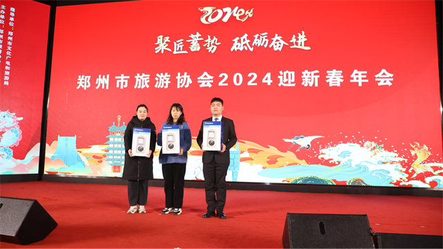 在本次迎新春年會(huì)是該協(xié)會(huì)第六屆理事會(huì)換屆以來(lái)的一次全新亮相,新一屆協(xié)會(huì)領(lǐng)導(dǎo)班子集中上臺(tái),齊送新春祝福。會(huì)上,對(duì)2023年度優(yōu)秀研學(xué)旅行服務(wù)單位、游客喜愛(ài)的旅游目的地、鄭州文旅推薦官等進(jìn)行表彰。同時(shí),別出心裁的互動(dòng)抽獎(jiǎng)環(huán)節(jié)、精彩紛呈的文化節(jié)目贏得了現(xiàn)場(chǎng)嘉賓的陣陣掌聲,現(xiàn)場(chǎng)氣氛熱烈、高潮迭起。