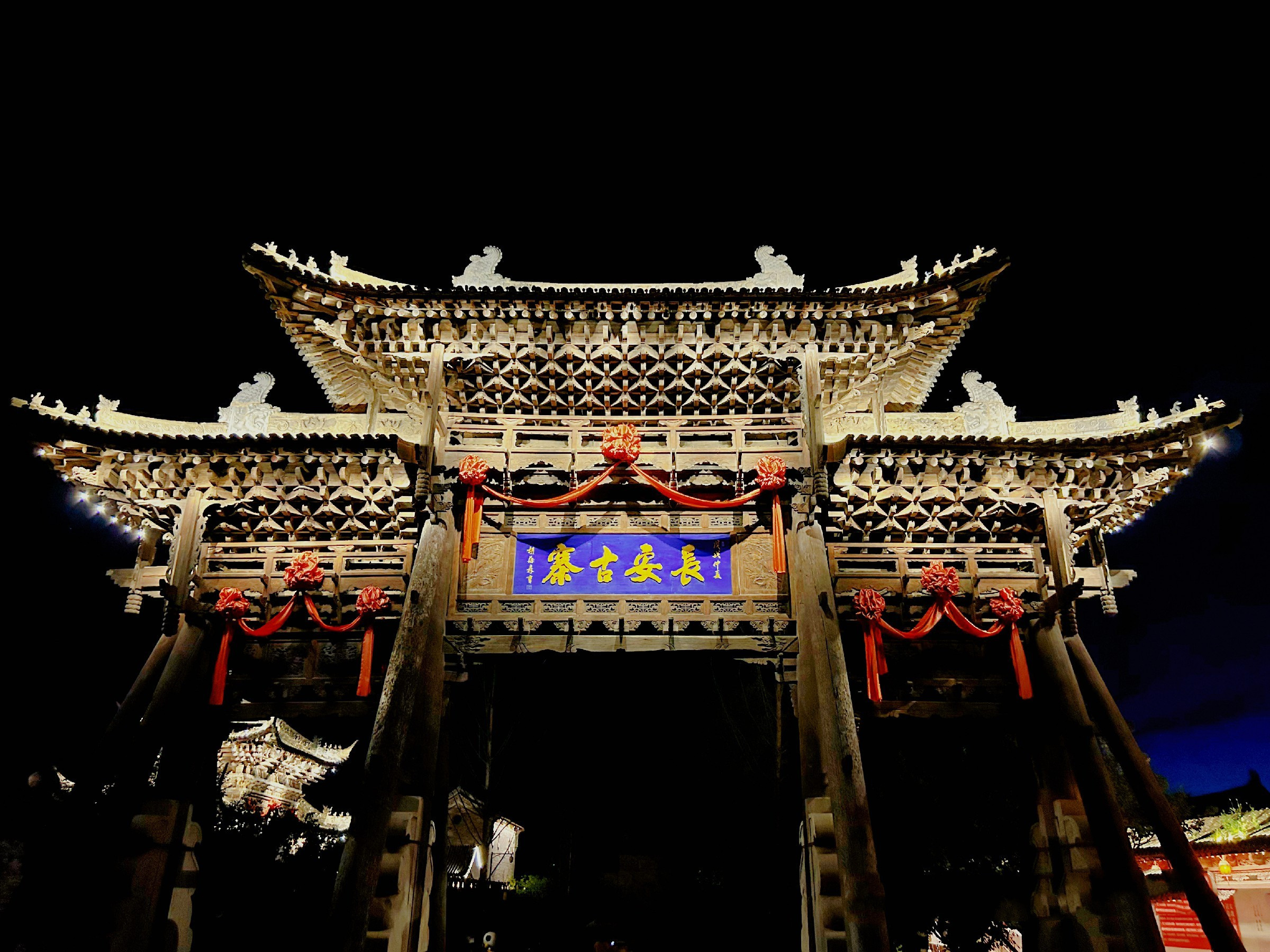 櫻桃溝·長安古寨是一座復建還原600年前的明代古建群落。當夜幕降臨,古建筑群內(nèi)的魚燈龍燈閃爍著溫暖的光芒,各種節(jié)目輪番上演,《迎·萬邦來朝》展示唐朝禮節(jié)儀式,《賀·龍鳳呈祥》展現(xiàn)飛天龍鳳之美,《賞·長安民俗》帶你感受古代夜市的煙火氣。