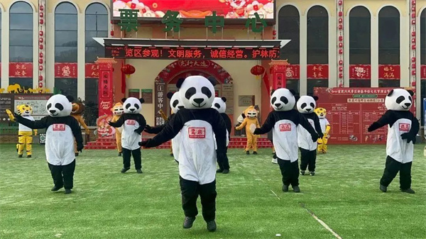 竹海野生動物園全員換上可愛的“熊貓裝”,舉辦“第三屆炸油貨新春美食節(jié)”,各類特色美食讓游客免費品嘗,精彩的民俗表演和雜技表演輪番上演,為游客帶來歡樂和活力。