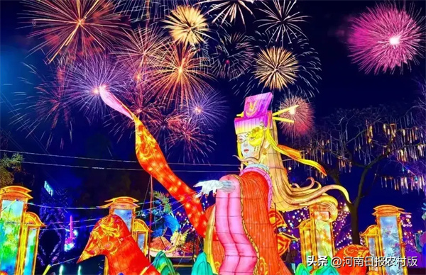 除了各色美食和民俗風(fēng)情引人入勝,萬盞花燈花也是萬歲山武俠城亮麗的風(fēng)景。夜幕降臨,璀璨燈組次第亮起,描繪著古城開封夜色中最華美的畫卷。這些花燈每一盞都獨(dú)具匠心,既有傳統(tǒng)的龍鳳呈祥、魚躍龍門,也有寓意吉祥如意的福字燈,游客們?cè)谫p燈的同時(shí),也能感受到中國傳統(tǒng)文化的魅力。