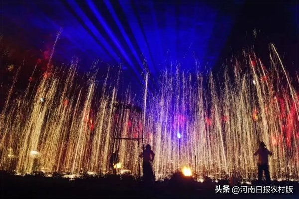 “火花四濺、鐵花飛舞,展現(xiàn)了力與美的極致。”夢(mèng)幻鐵花是最受歡迎的表演項(xiàng)目。鐵花在夜空中綻放,如同璀璨的星辰,將整個(gè)武俠城裝點(diǎn)得如詩如畫,游客們贊嘆不已,紛紛拿出手機(jī)記錄下這美麗瞬間。