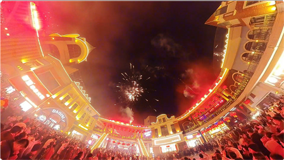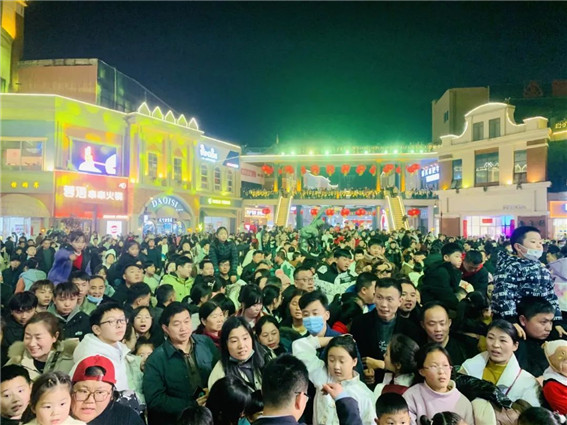 圖為熙熙攘攘的游客欣賞煙花。 河南省雜技集團(tuán)供圖