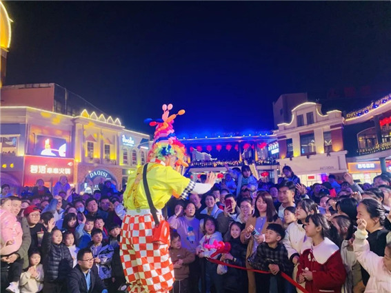 小丑演員和游客互動(dòng) 河南省雜技集團(tuán)供圖