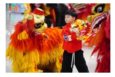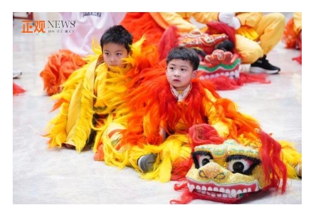 演出現(xiàn)場,40架大、中、小型舞獅“踩著”鼓點,“應(yīng)著”鑼聲,在復(fù)雜多變、節(jié)奏強烈的打擊樂聲下,威武雄壯的成年獅群和憨態(tài)可掬的幼獅相映成趣,給人們帶來了極其強烈、震撼人心的感染力。