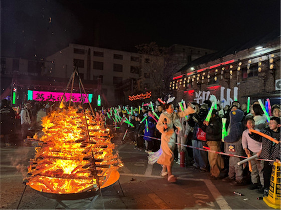在大家尖叫和歡呼聲中,兩個 “千里江山圖” 巨型煙花在夜空中華麗綻放,再配上絢麗璀璨的聲光電,給現(xiàn)場觀眾帶來一場沉浸式國風千里江山煙火大秀。在音樂、篝火和煙火中,大家度過了一個美妙的元宵之夜。