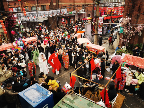 這是一場古今交融的驚艷亮相,更是一次傳統(tǒng)文化與流行時尚的激情碰撞,這種大膽的跨界與肆意的想象,更是引發(fā)游客們驚呼:“山海經(jīng)里的神獸,二次動漫coser和古代的才子佳人,和我們一起過元宵佳節(jié),也太潮太夢幻了!”