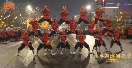 跆拳道表演、民族舞蹈、鼓樂表演……花車出場間隙,來自各個武校的少林小子用充滿活力的演出祝福大家龍年大吉、福氣滿滿。