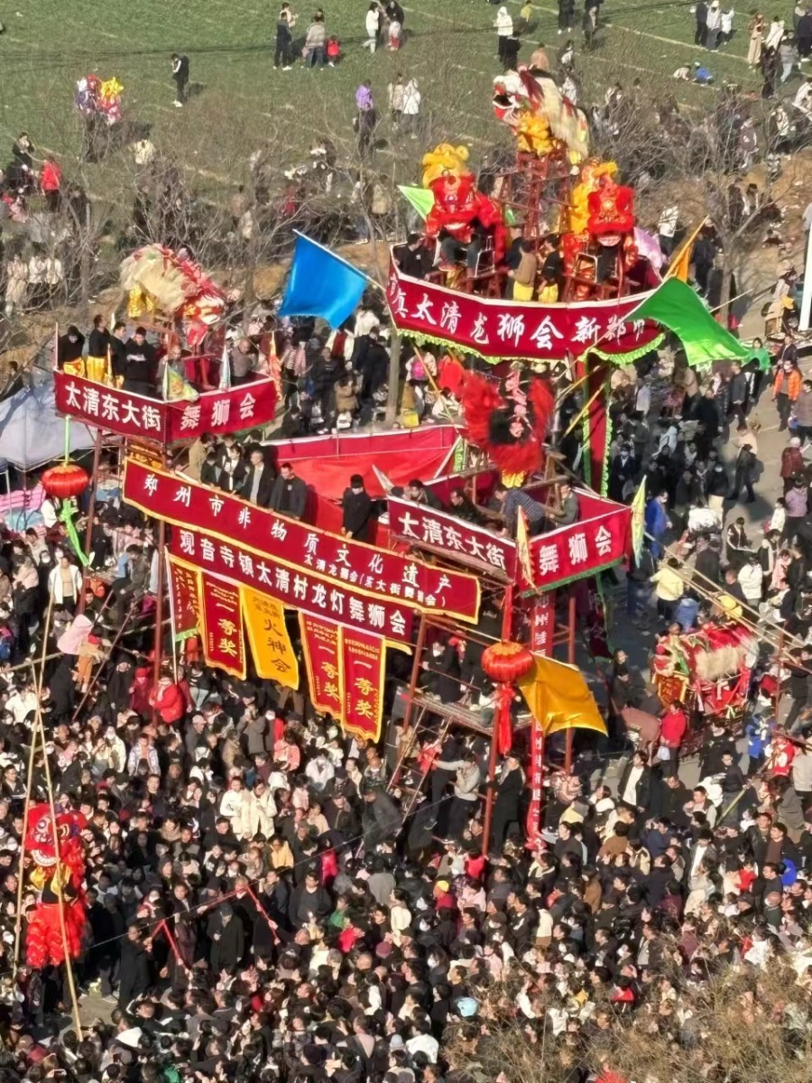 3月2日,農(nóng)歷正月二十二,新鄭市梨河鎮(zhèn)七里堂村“獅王舞新春,文化振民心”廟會鳴鑼開場。鞏義“中華第一獅”小相獅王、滎陽蔣頭獅王、襄縣獅王等共30余獅王同臺競技,為民獻技、為國祈福。