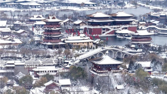 圖:開(kāi)封清明上河園雪景美如畫(huà)