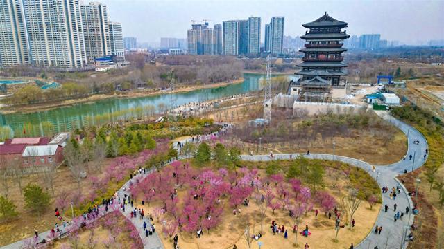 3月10日,春暖花開,鄭州市西流湖公園“千金梅嶺”的梅花綻放芳容,市民紛紛走進(jìn)公園賞梅踏青。