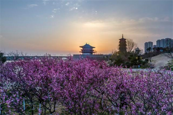 隋唐城遺址植物園中春意盎然,各式綠樹成蔭成林,曲徑通幽,是拍攝寫真的“神級”出片地。梅花、連翹花、紅葉李、杏花、櫻花、桃花、玉蘭、迎春花將接力開放。