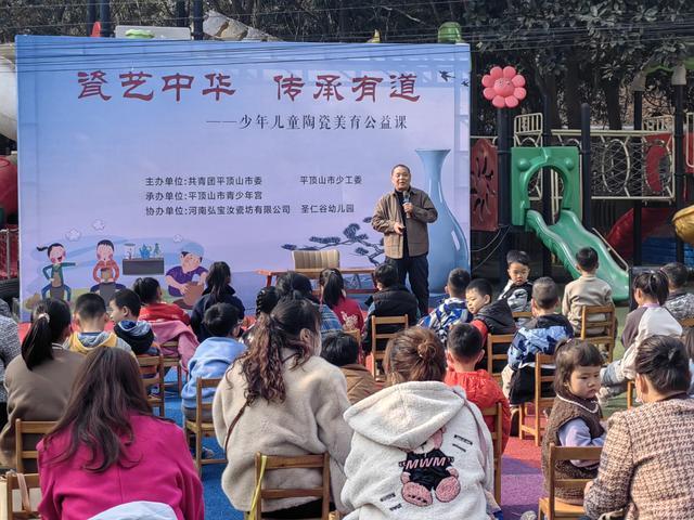 據(jù)介紹,活動由共青團平頂山市委、平頂山市少工委主辦,平頂山市青少年宮承辦,河南弘寶汝瓷坊有限公司、圣人谷幼兒園協(xié)辦。本期公益課由汝州市陶瓷協(xié)會名譽會長、弘寶汝瓷創(chuàng)始人范隨州現(xiàn)場授課,從瓷器的功能性切入,由淺入深、由表及里地講解了汝瓷的發(fā)展歷程,生動形象地描述了汝瓷作為文化符號所承載歷史記憶。