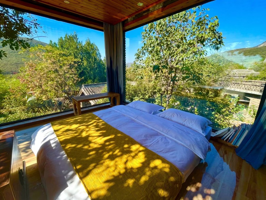 秋冬季節(jié)的禪心居民宿客房窗景
