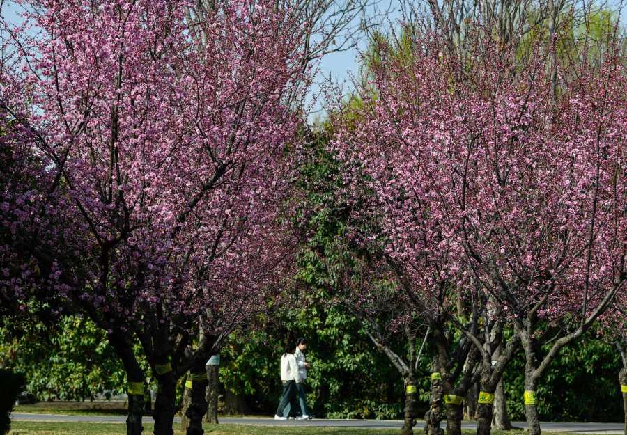 “似梅非梅,似桃非桃”,這種花兒叫美人梅。20日,記者在鄭州植物園南門(mén)廣場(chǎng)和辦公樓周邊看到,約700株美人梅進(jìn)入盛花期,一簇簇粉嘟嘟的花朵在枝頭妖嬈綻放,一片粉色的花海令游客流連忘返,成為植物園內(nèi)一道最靚麗的風(fēng)景線。