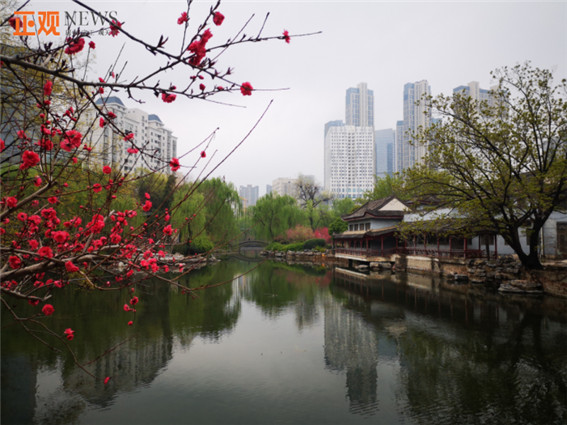 青年湖目前水面面積為34000平方米,兩岸種植著碧桃垂柳,這個季節(jié),正是一派紅花綠柳映煙波的美景,碧波蕩漾,魚兒雀躍,風(fēng)景宜人,游人泛舟湖中,宛若畫中游。