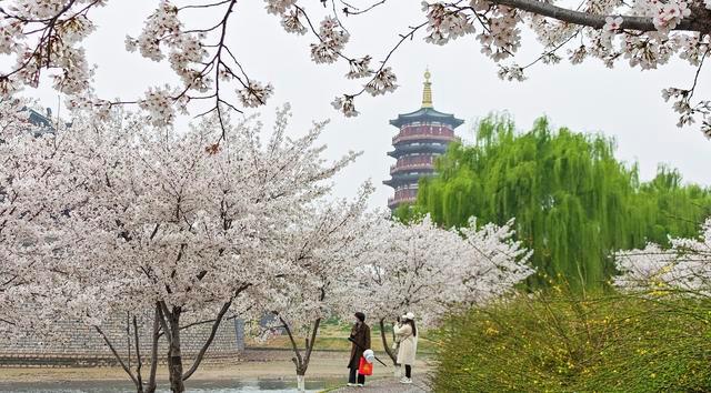 3月24日,市民在洛陽(yáng)市瀍河區(qū)朱櫻塔景區(qū)櫻花園內(nèi)賞景游玩。 黃政偉 攝